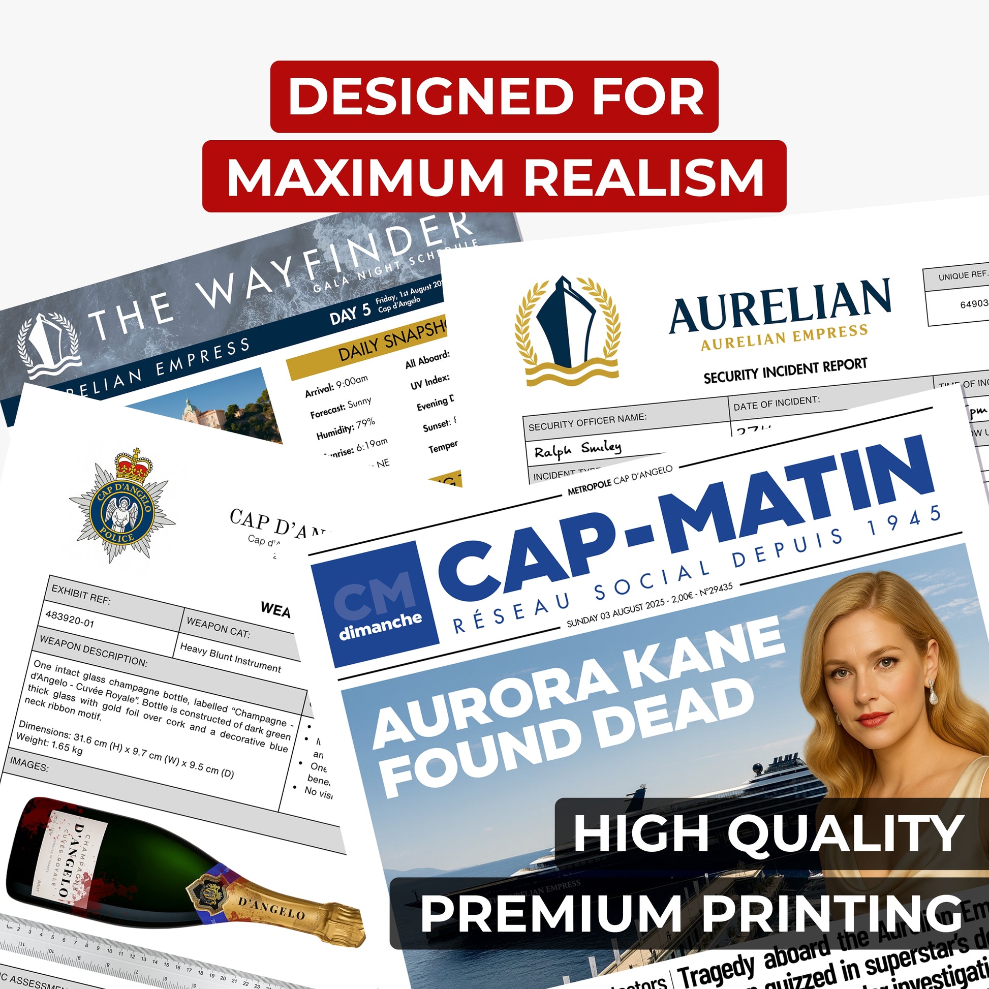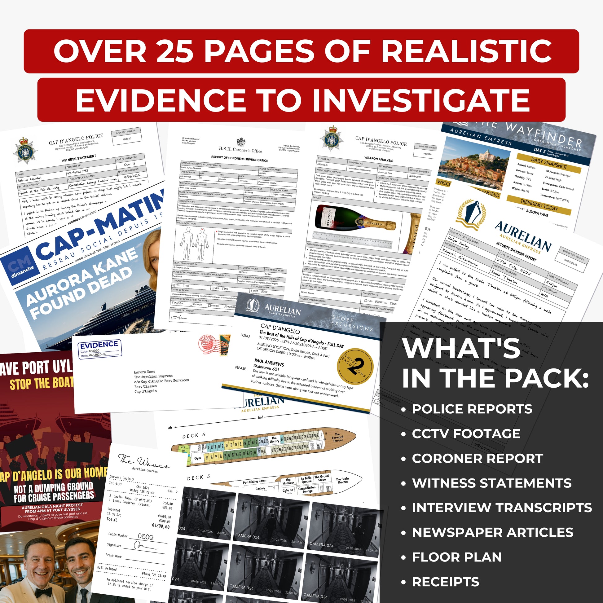 Over 25 pieces of carefully curated, premium quality, hyper realistic evidence
